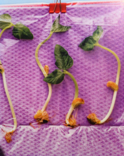 Pamuğu ıslattıktan sonra uzatarak fasulyelerinizi ekecek (!) bir alan oluşturun. Islak pamuğun yarısına kuru fasulyelerinizden yanyana koyun. Pamuğun boş olan yarısını fasulyelerin üzerine kapatın. Pamuğu derin bir kaba ya da bir tabağa koymayı unutmayın… Pamuğun kurumasına izin vermeden zaman zaman sulayın. Filizlenen fasulyeler hızla büyüdükçe çocuğunuzun heyecanını seyredin…