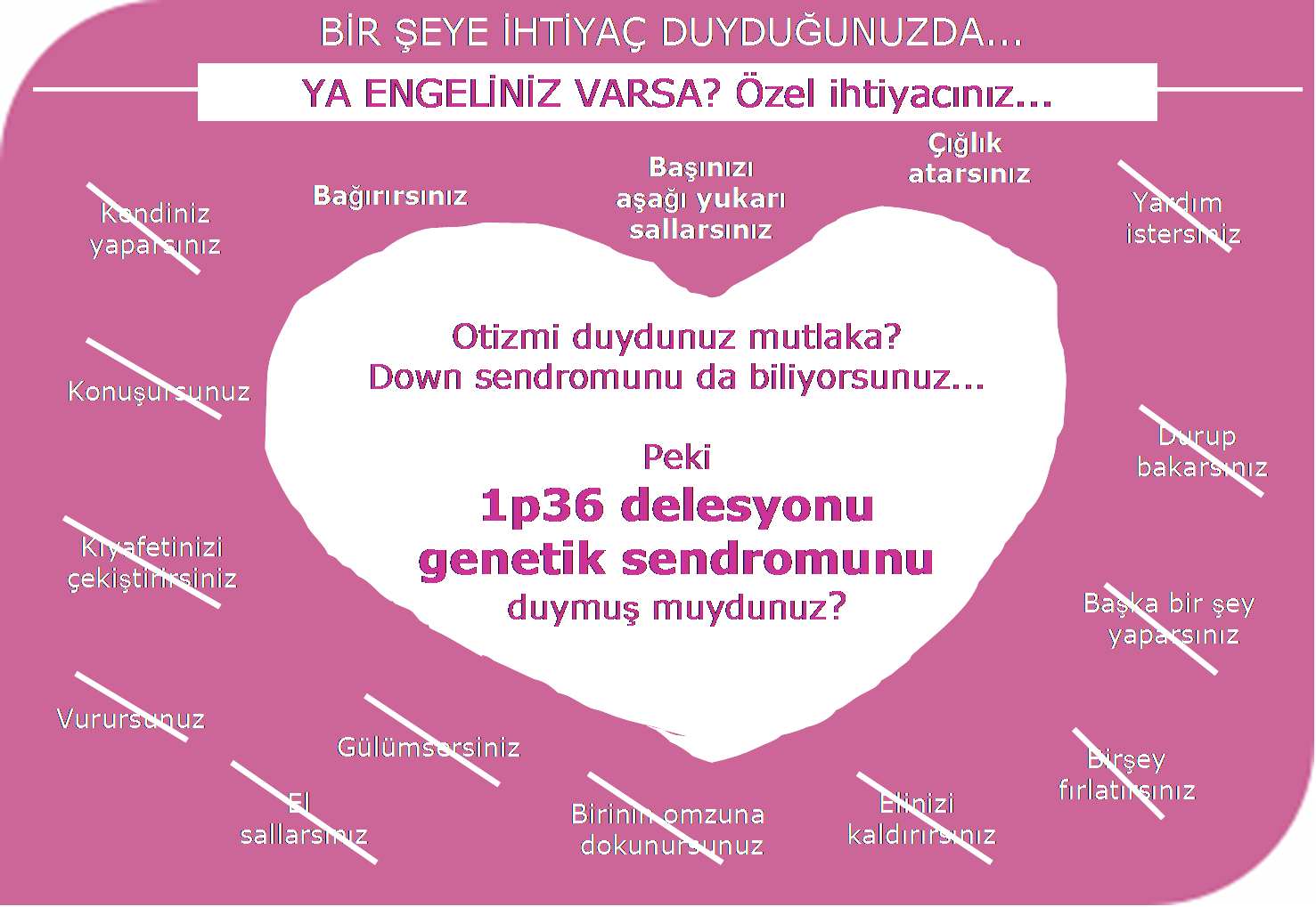 Nehir`deki 1p36 genetik delesyonu tanısı koyulduktan hemen sonra doğal olarak ilk yaptığımız şeylerden bir tanesi internetten konuyu araştırmak oldu. Amerika merkezli 1p36 tanısı koyulmuş çocukların ailelerinin oluşturduğu bir yahoo grubunu bulduk, hemen biz de katıldık bu gruba. Başlangıçta karşılaşmamızın olası olduğu her problemi buradaki ailelerin deneyimlerini okuyup paylaşarak öğrendik. 1p36 tanısı konmuş çocukların yaklaşık %70’inde epilepsi görüldüğünü öğrendiğimizde, hemen nöroloğumuzdan EEG çekilmesini talep ettim. Evet bunu doktorumuzdan biz talep ettik. Yapılan testlerde neyse ki Nehir`de böyle bir probleme rastlanmadı. Bu konuya ozellikle dikkat çekmek istememin sebebi şu ki, doktorlara güvenelim fakat daha önce rastlanmayan bir tanı ile karşıilaşıldığında kendilerinin de yetersiz kalma olasılıklarının olduğunu da göz ardı etmeyelim. Onlar herşeyi düşünemeyebilirler. Biz aileler yaşadıklarımızı birbirlerimiz ile paylaştıkca olası riskleri önceden tahmin etme ve tedbir alabilme yetkinliğine sahibiz. Bunu anne ve babası doktor olan ben söylüyorum!