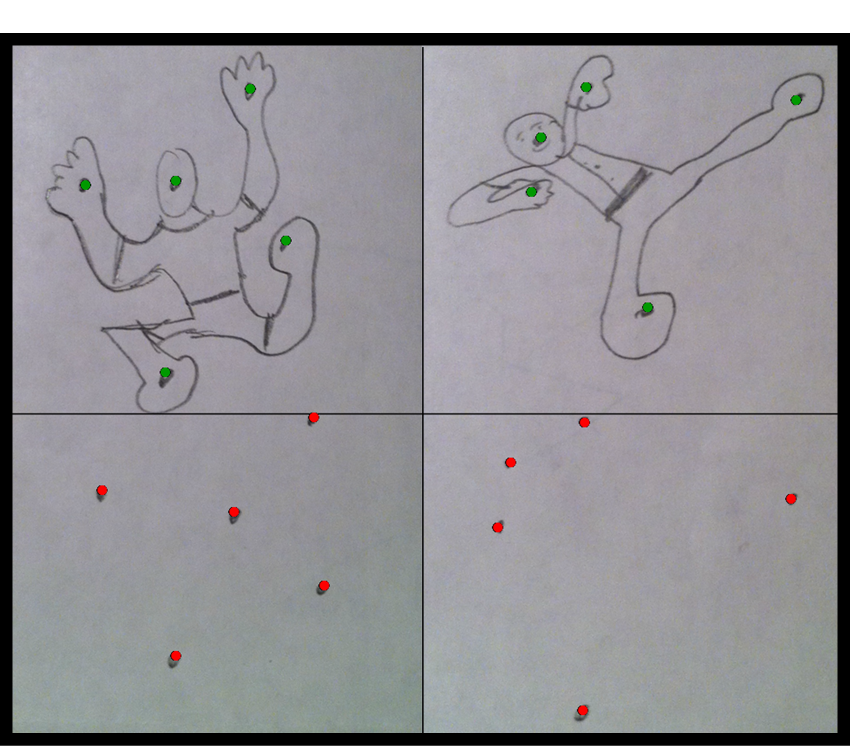 Resimdeki kırmızı noktalar adam çizilmeden önceki noktaları gösteriyor. Yeşil noktalar ise aslında kırmızı noktalar kullanılarak nasıl bir adam oluşturulabileceğini. Aynı noktalardan belki de siz farklı bir adam oluşturabilirsiniz.